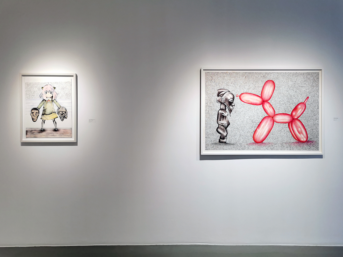 Raymond Tsham (1963), the famous ballpoint pen artist, has two children who have chosen art as a career, including 18-year-old Hilaire. While utilising his father’s technique and drawing on his artistic universe contrasting symbols from African tribal art with global icons of contemporary art, the young man is developing a style that is heavily influenced by the world of manga.