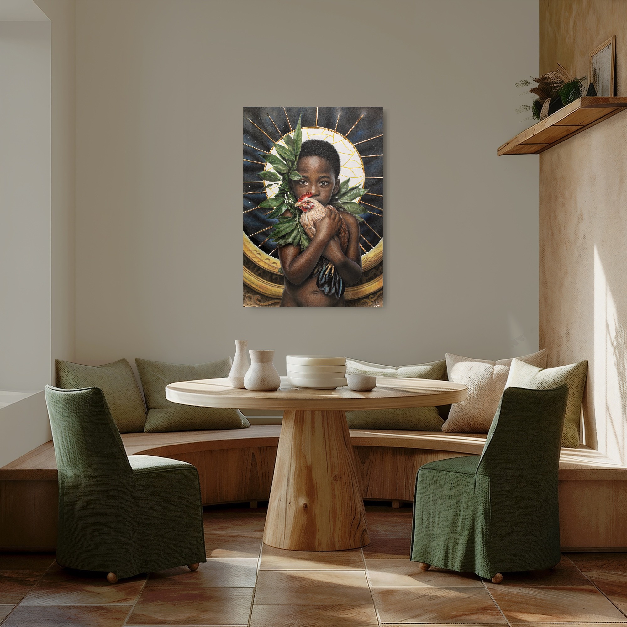 Crayon graphite et crayons de couleur sur papier 98 x 68 cm Cadre vitrine blanc Disponible Gardien du vivant.